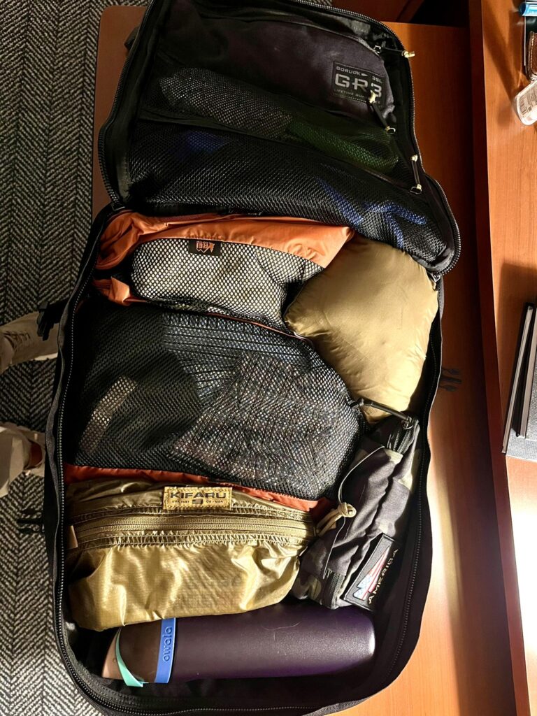 Air travel note: although the GR3 is the largest possible carry-on for most or all american airlines, it takes up a lot of space on smaller planes. I flew on an EMB 145 and the 35L wouldn’t fit under the seat and took up the entire overhead bin. If someone else had wanted to use the bin over our seat, one of our bags wouldn’t fit. However, on the A321 that I flew in the next leg, my 35L GR3 fit under the seat no problem.